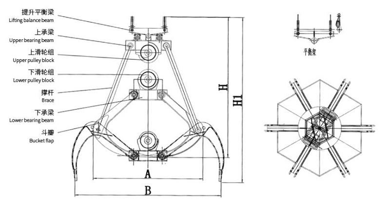 挖掘力就大。現(xiàn)在就這三種多瓣抓斗作些介紹。