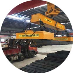 MW18系列電磁鐵運用獨特的磁路,雙線包結構,具有散熱好,透磁深,能穿透多層氣隙的特點,可吊運沒做捆扎或只做了簡單捆扎的棒材,扁鐵,角鋼等。有常溫型和高溫型。由于多采用兩臺或多臺連吊,故其與掛梁聯接多采用兩吊點或四吊點結構,購買時需要注明。由于圓鋼,螺紋鋼等這類型材的繞度較大,建議被吸物長度超過9米的采用多臺連吊。