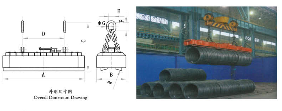 本系列專用于吊運盤圓,由于其自重輕,合理的結構,其次磁極結構能適應不同直徑的盤圓,電磁鐵的選擇取決于盤圓的長度,既可沿電磁鐵長度方向吊運多捆盤圓,也可沿寬度方向吊運多捆,可提供多臺并用方式,并能單獨通,斷,方便裝車作業。